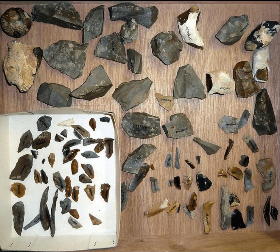 - Stone tools, including flakes and cores